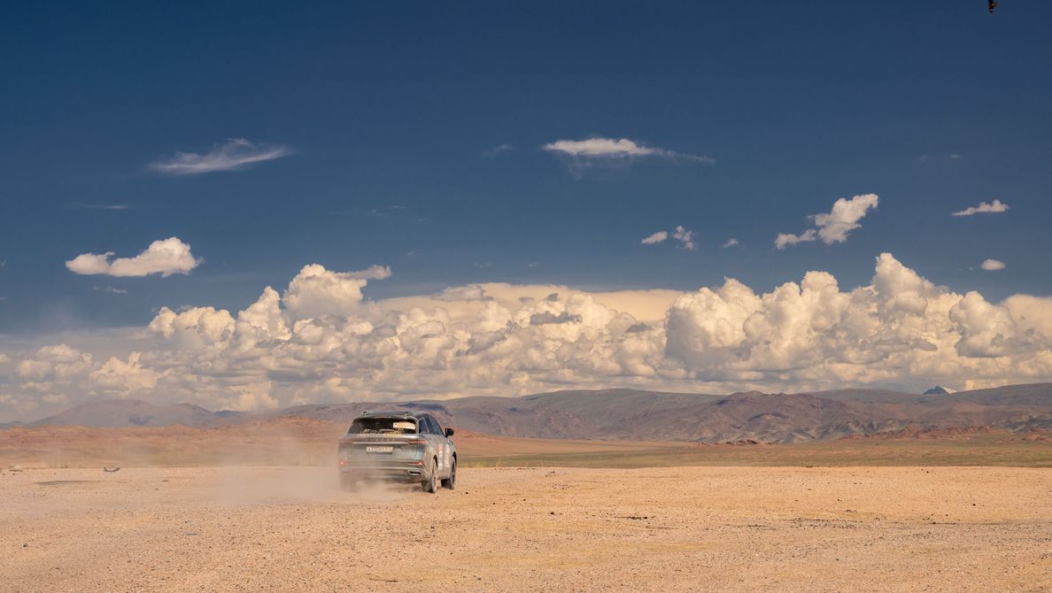 Первое серьезное испытание для нашего медиаавтомобиля: 200 километров жестких грунтовых дорог! Ранним выездом нас не удивишь, а вот привычное асфальтовое покрытие сменилось каменистым грунтом где-то в глубине Монголии.